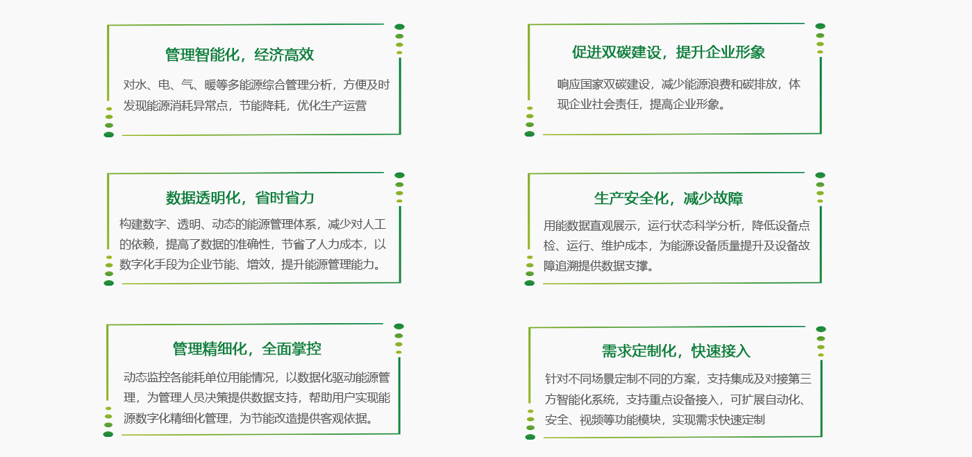 鐵路站房能源管理系統(tǒng)通過各類采集終端獲取用能數(shù)據(jù),實(shí)現(xiàn)對(duì)鐵路站房?jī)?nèi)電、水等各類能耗計(jì)量,完成數(shù)據(jù)采集與存儲(chǔ)、分類分項(xiàng)分戶分專業(yè)數(shù)據(jù)統(tǒng)計(jì)與分析等,做到能源消耗可視化、信息化。系統(tǒng)可幫助鐵路相關(guān)管理部門實(shí)現(xiàn)能耗預(yù)警,節(jié)能減排,提高能源利用率,降低用戶成本,提高風(fēng)險(xiǎn)預(yù)判能力。結(jié)合大數(shù)據(jù)分析,還可實(shí)現(xiàn)資產(chǎn)全鏈條全生命周期的管理,輔助優(yōu)化用能結(jié)構(gòu)、節(jié)能降耗、減少碳排放、降低成本。